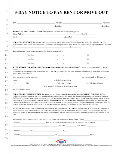 - 3 Day Notice to Pay Rent or Quit